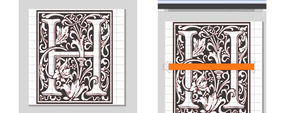 Eine Schrift, die Buchstaben als Initialien hat, öffnen, ich habe hier: Goudy Initialien verwendet. Mittig einen Balken zeichnen.