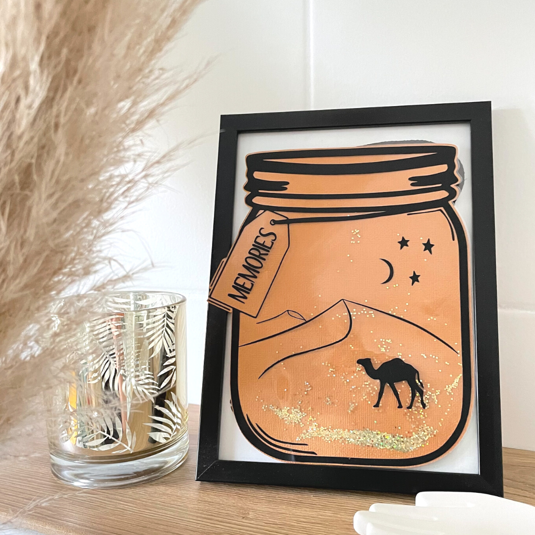 Sand, Muscheln, Steine – diese sollte man am besten gut verpackt aufbewahren. Auch für Erinnerungsgläser passt dazu diese Datei einfach perfekt. Hier wurde Vinylfolie auf eine Klarsichtfolie geklebt und die Rückseite aus Cardstock geplottet. Mit allen gesammelten Schätzen, oder etwas Glitzer füllen. Fertig!