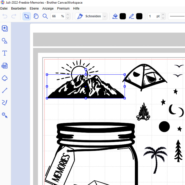 Stelle hier erst dein individuelles Memories Design zusammen. Die gezippte Datei enthält viele einzelne kleine Designs zur freien Auswahl. Du kannst die verschiedenen Designs ganz wie du möchtest zusammenstellen. Mit Jeep in der Wüste, mit Camper am Lagerfeuer, oder ein kleines Zelt im Wald. Oder verwende die einzelnen Designs der Plotterdatei dazu für ein sommerliches Tattoo.