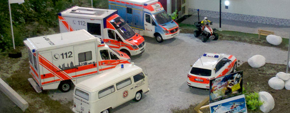Bei den Modellen handelt es sich um maßstabsgetreuen Modelbau der Rettungswagen der Johanniter in Leipzig bzw. dem Kommandowagen des Katastrophenschutzes Leipzig Land – das ist der Q5. Auf dem Q5 wurden die Schriftzüge beider Türen sowie sämtliche Streifen geplottert. Schriftgröße bei dem Emblem auf der Tür 0,7mm (!!!). Mit der Lupe tadellos lesbar! Hier wird deutlich was mit diesem Gerät und guter Folie machbar ist!