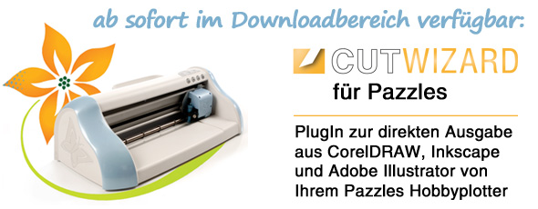 hobbyplotter.de freut sich Ihnen das beliebte PlugIn CutWizard nun auch für Ihren Hobbyplotter anbieten zu können. CutWizard ermöglicht Ihnen die unkomplizierte und komfortable Ausgabe Ihrer Designs aus Adobe Illustrator oder CorelDRAW direkt auf Ihre Pazzles Inspiration.