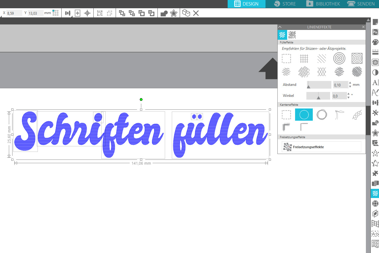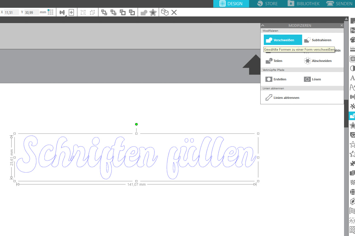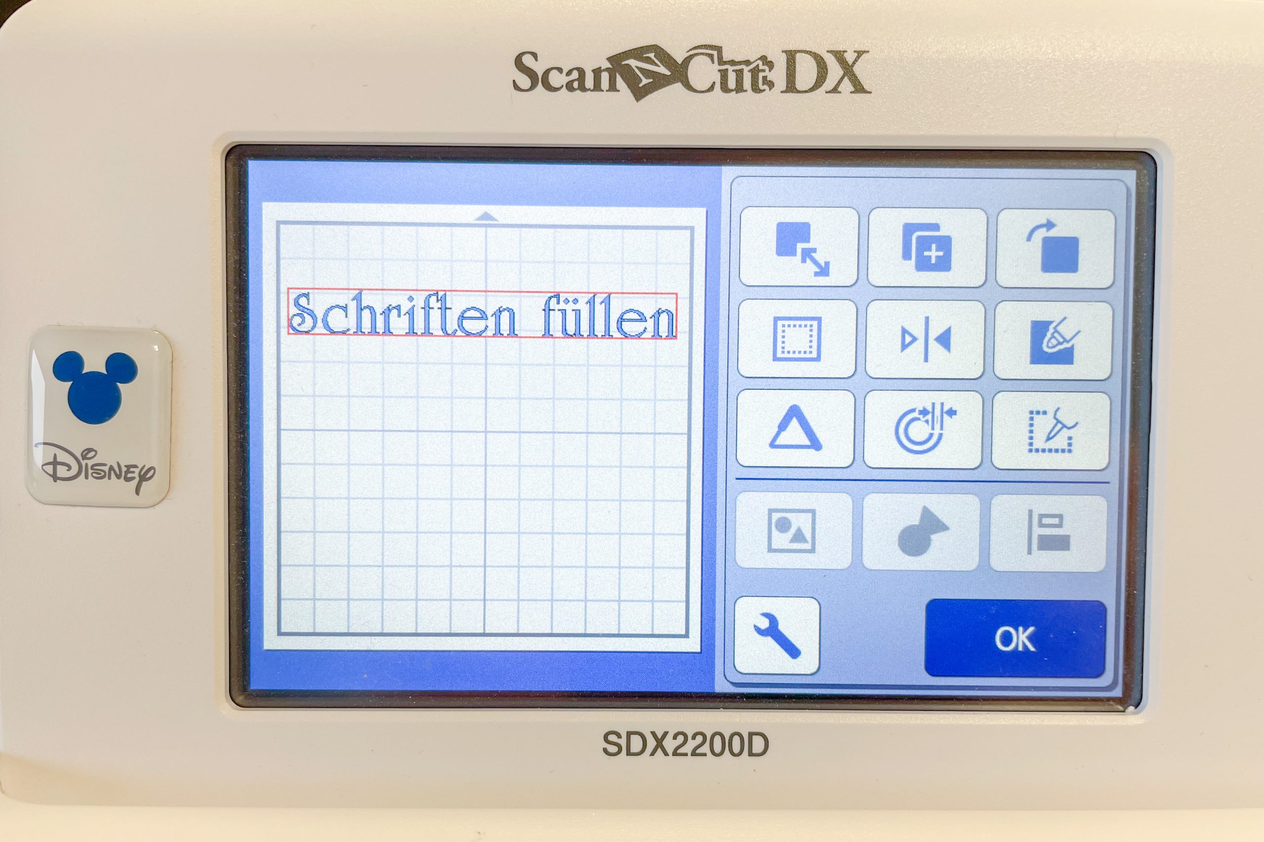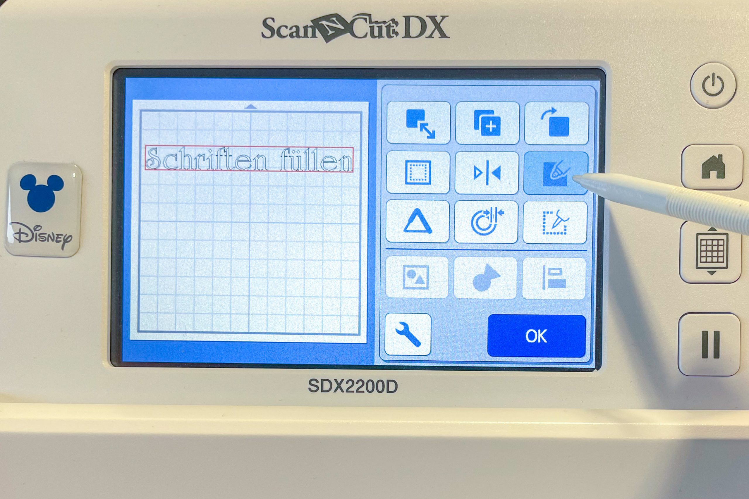 Um eine gefüllte Schrift zu erzeugen sind nur ein paar kleine Einstellungen nötig. Mit deinem Brother Plotter ist dieses direkt am Plotter möglich, für Silhouette wählst du den Weg zum Schriften füllen über das Silhouette Studio Programm.