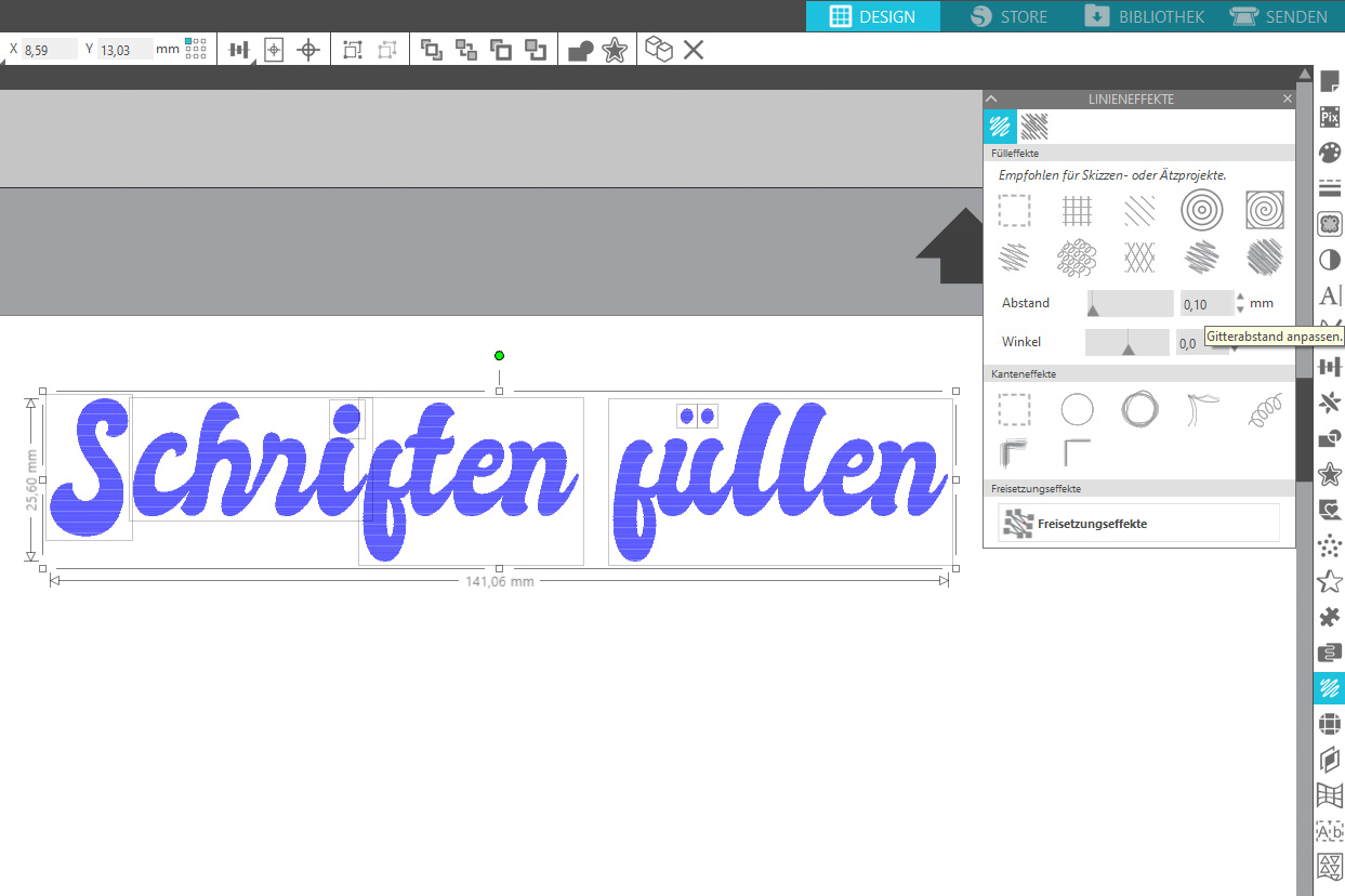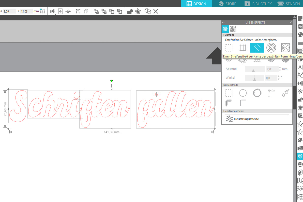 Natürlich kannst du aber auch im Brother CanvasWorkspace deine Schriften, oder Designs zum Zeichnen füllen.