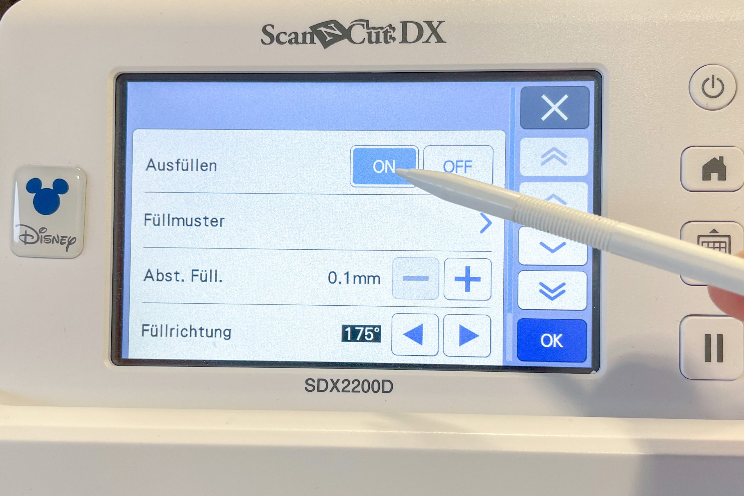 Ich arbeite mit einer Brother ScanNCut CM600. Da kann man leider nicht sehr viel einstellen.