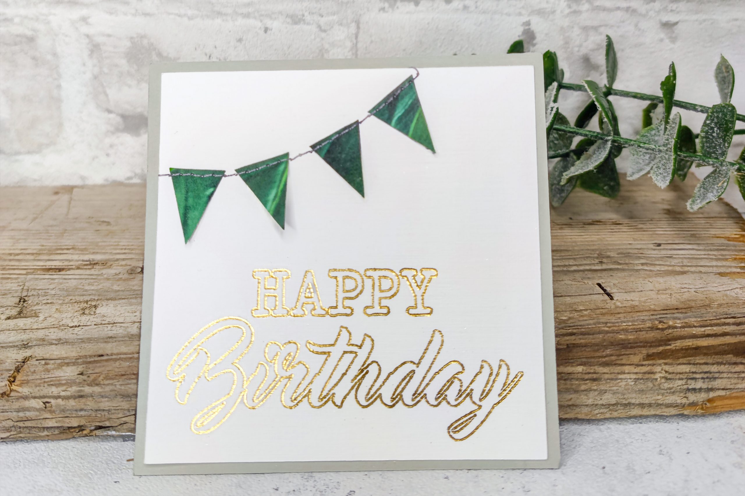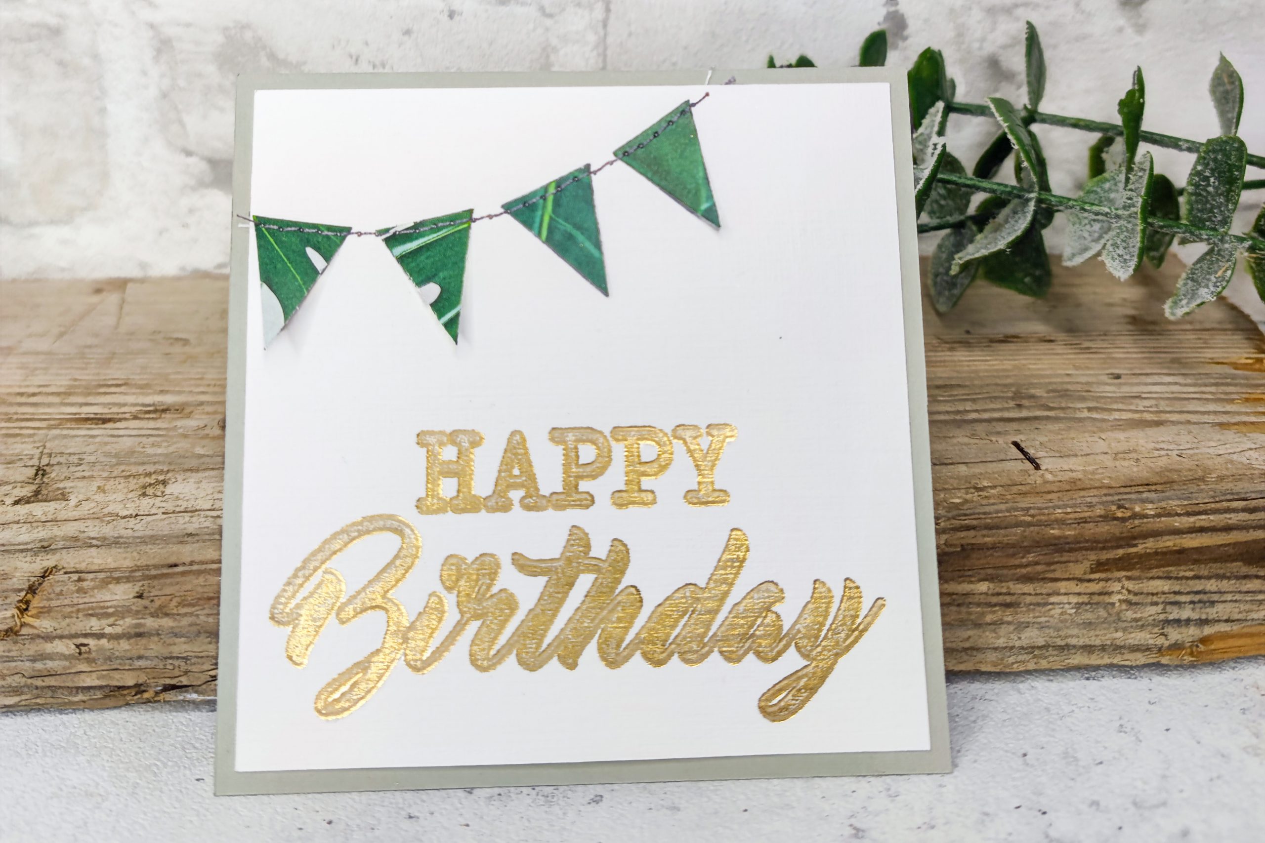 Die Karte wurde nicht mit einem normalen Stift, sondern mit einem Heißtransfer-Werkzeug (FoilQuill) erstellt.
