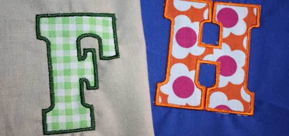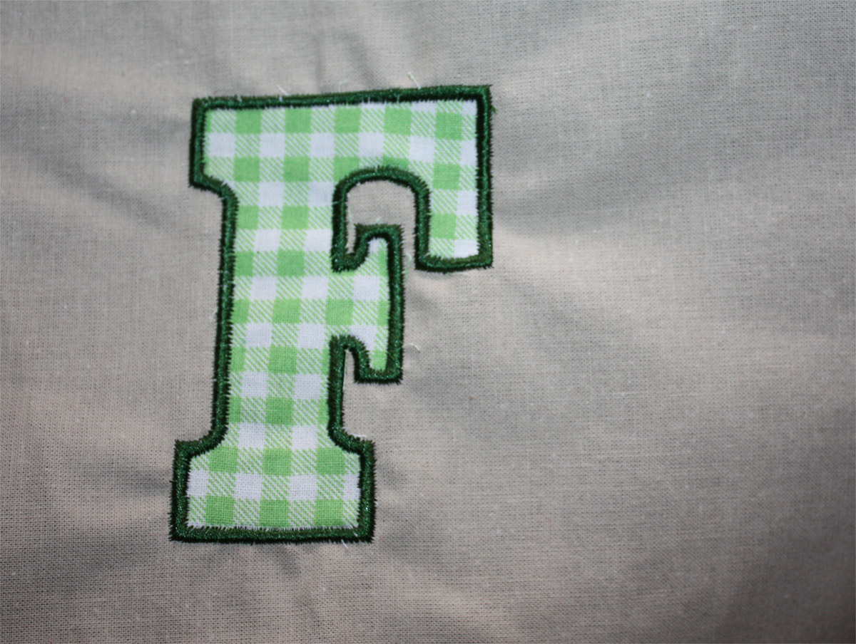 Es gibt natürlich auch bei solchen Buchstaben-Applikationen zum Selbermachen verschiedene Möglichkeiten zur Gestaltung. So kann man z.B. am Rand nur eine E-förmige Naht vorsehen und ein leichtes Ausfransen der Applikation als Stilelement nutzen. Wir werden in einem zweiten Bericht auch noch so eine Schrift vorstellen. Hier haben wir uns jetzt jedoch für eine Buchstaben-Applikation mit sogenannter Satin-Aufstickung entschieden.