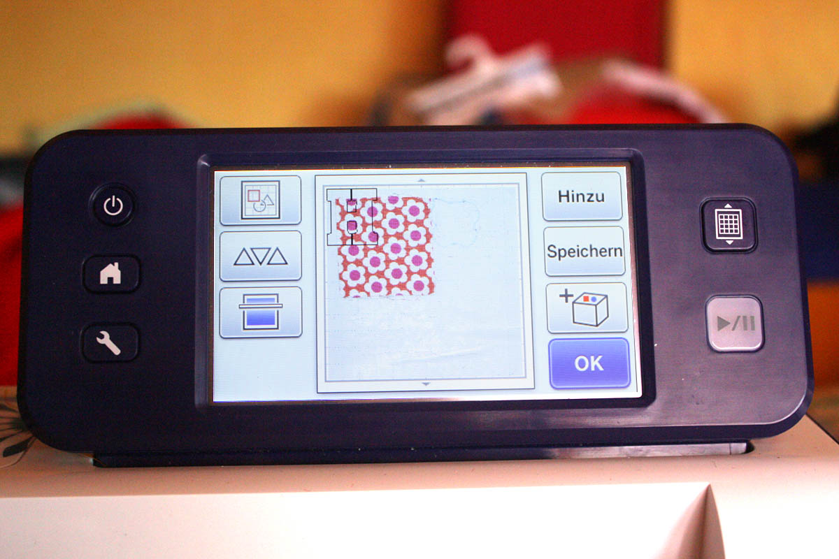 Nun laden Sie die Datei per USB-Stick an der Stickmaschine und wählen wiederum das gleiche Design aus.