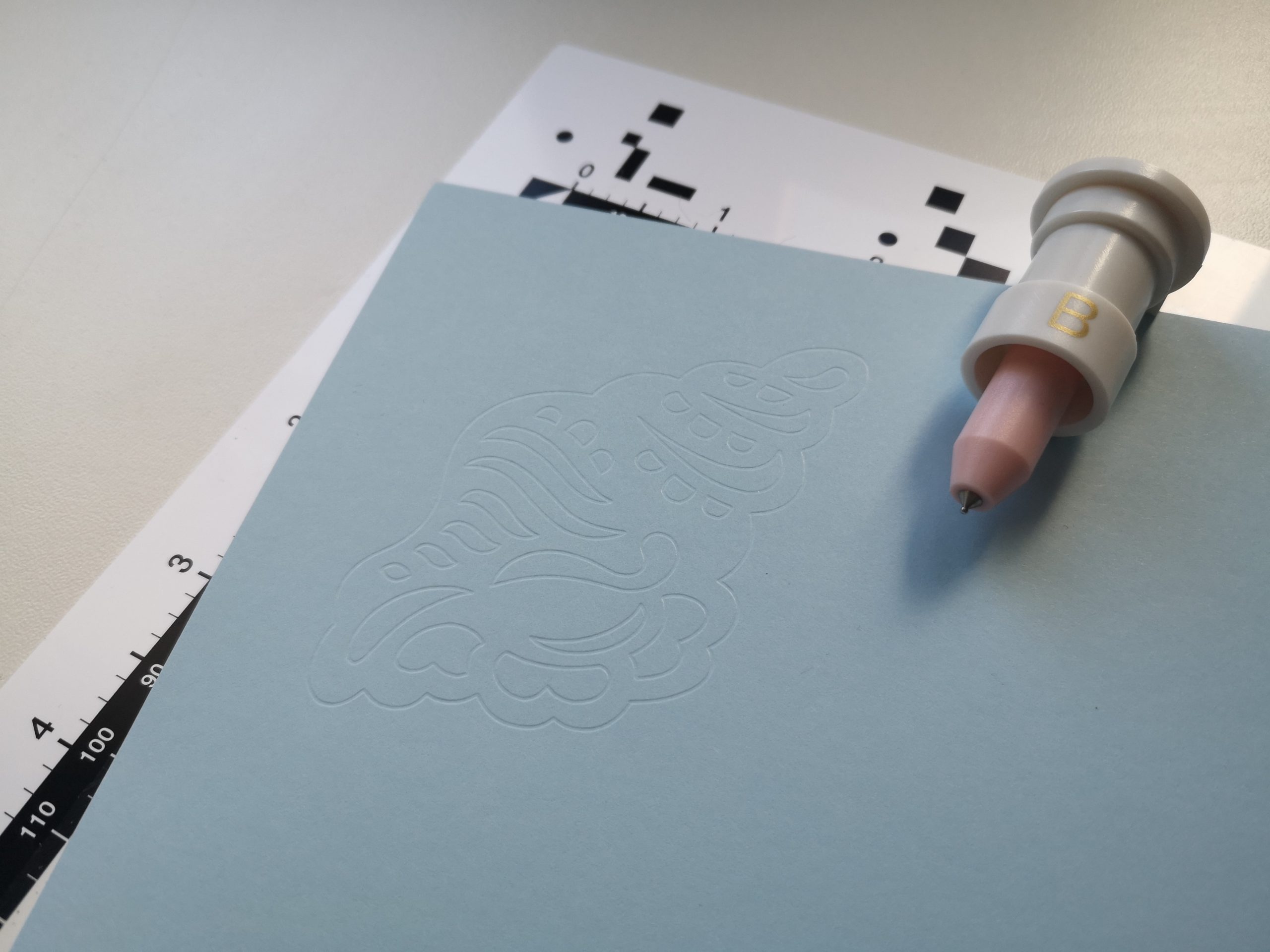 Auch auf dem Papier von plottiX lassen sich mit dem Bevel Quill Werkzeug Prägeeffekte erzielen.