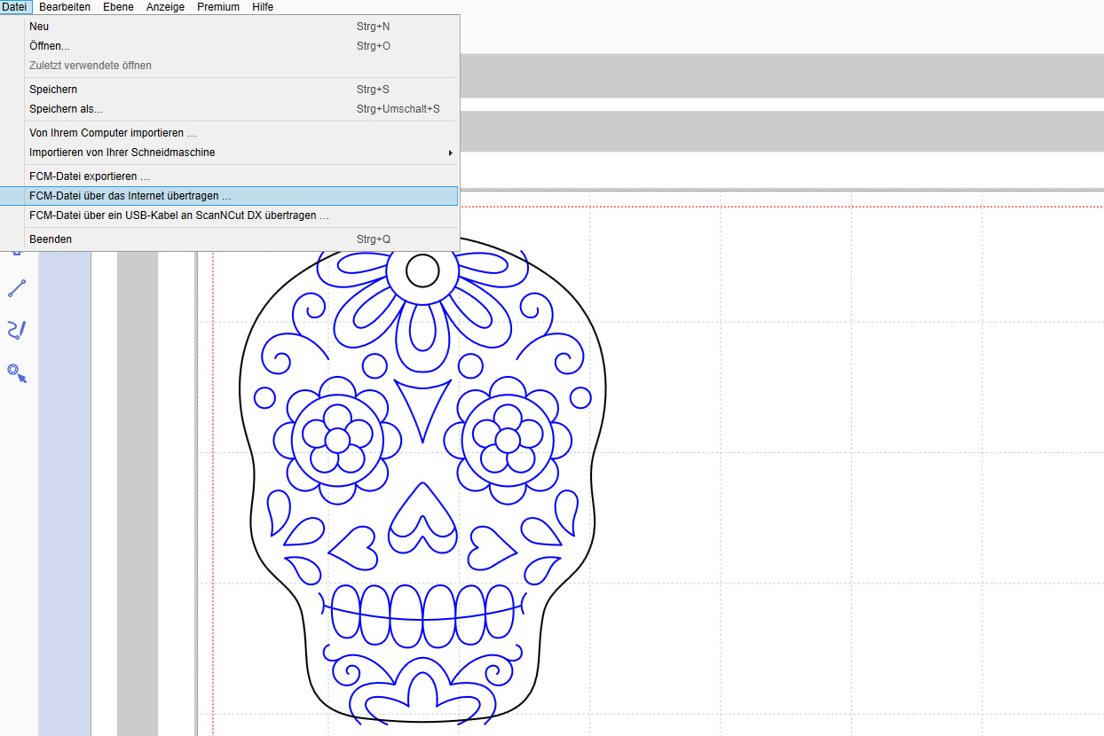 Zuerst übertrage ich die Datei aus dem Brother CanvasWorkspace an meinen Plotter. Die vorgegebene Größe behalte ich bei – auch wenn sie im ersten Moment recht groß erscheint. Die Folie schrumpft während dem Backen in die passende Anhängergröße.