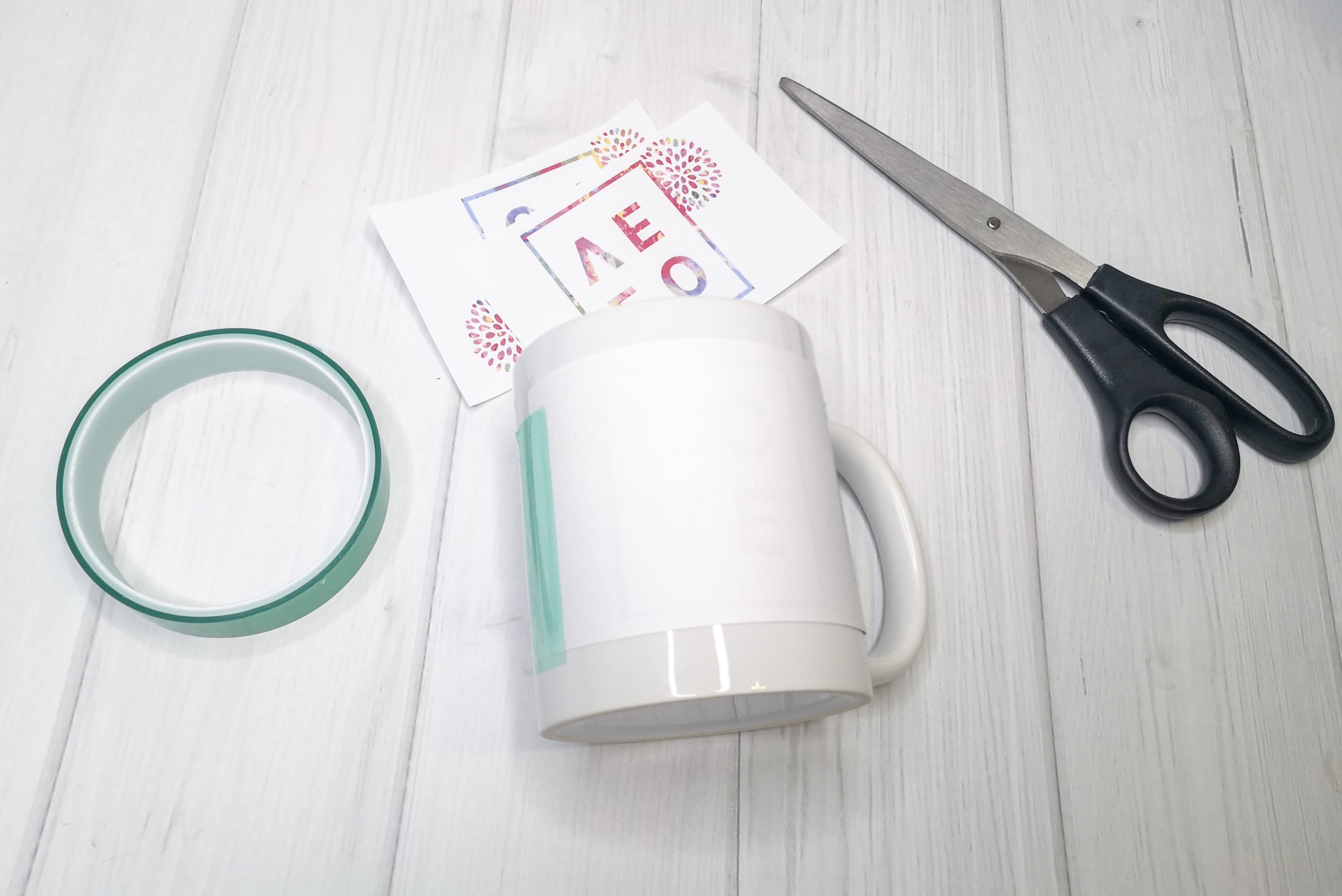 Um eine gerade Sublimation z.B. von einem Schriftzug auf der Tasse zu erreichen kann es helfen den Ausdruck so zuzuschneiden, dass er bündig mit dem Tassenboden abschließt. So kann das Motiv später nicht schief sublimiert werden.