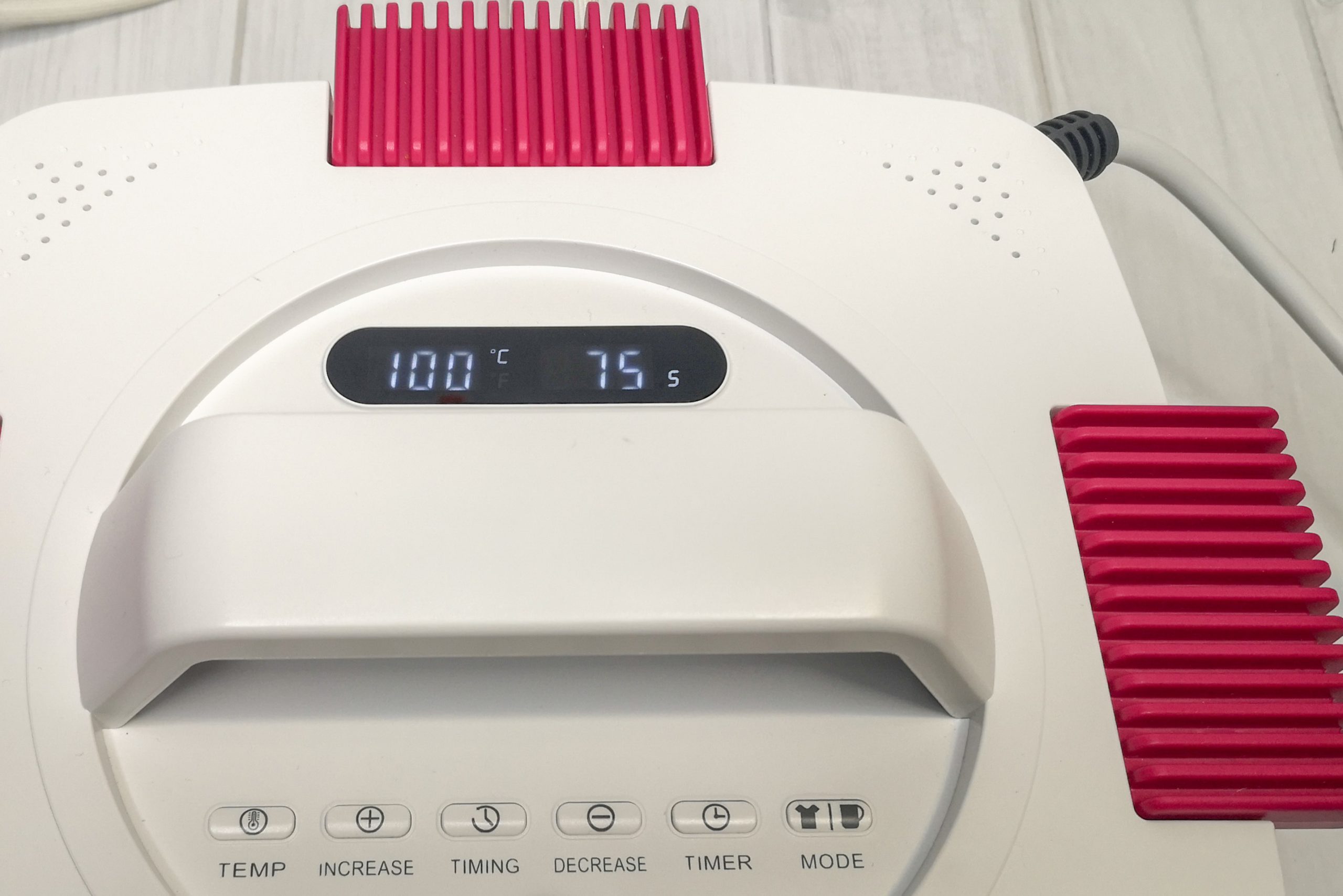 Sobald diese auf ca. 95-100°C vorgeheizt hat, ertönt ein Signalton. Jetzt ist die Presse heiß genug um die Tasse mit ihrem Sublimationsmotiv in die Tassenpresse einzulegen.