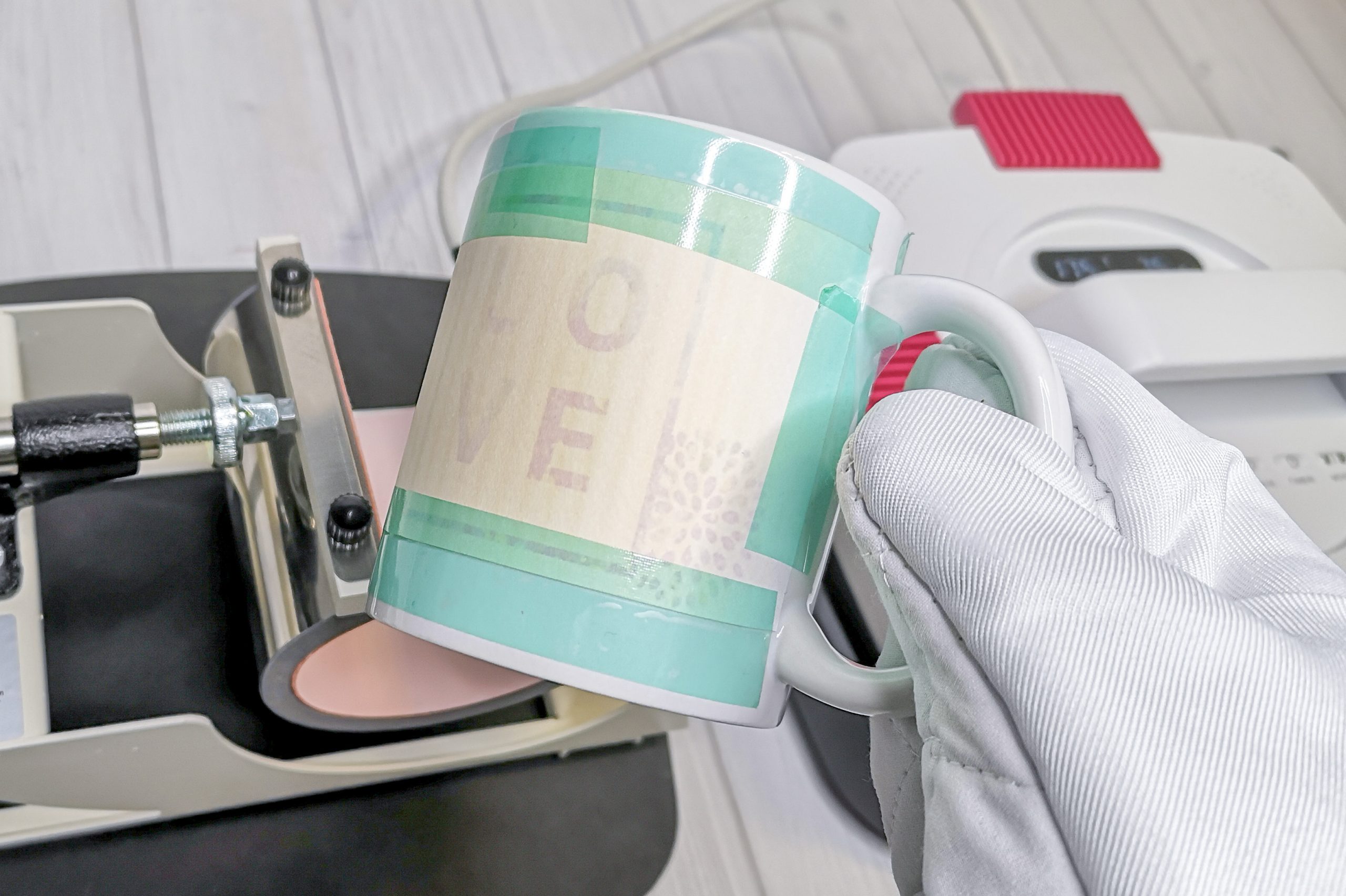 Die Tasse sollte vor dem Fixieren des Sublimationspapiers frei von Fingerabdrücken und Staub sein.