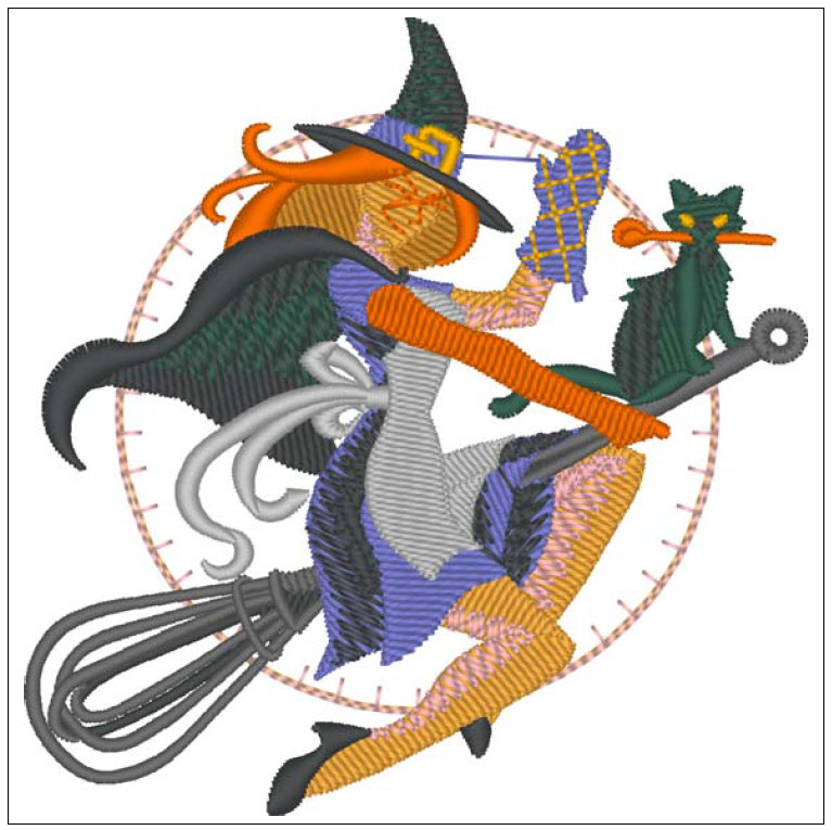 Fündig wurde ich (wieder einmal) bei urbanthreads.com. Da gab es eine junge Hexe die auf einem Rührbesen durch die Gegend saust. Diese Hexe machte einen freundlichen Eindruck und sollte die Grundlage werden.