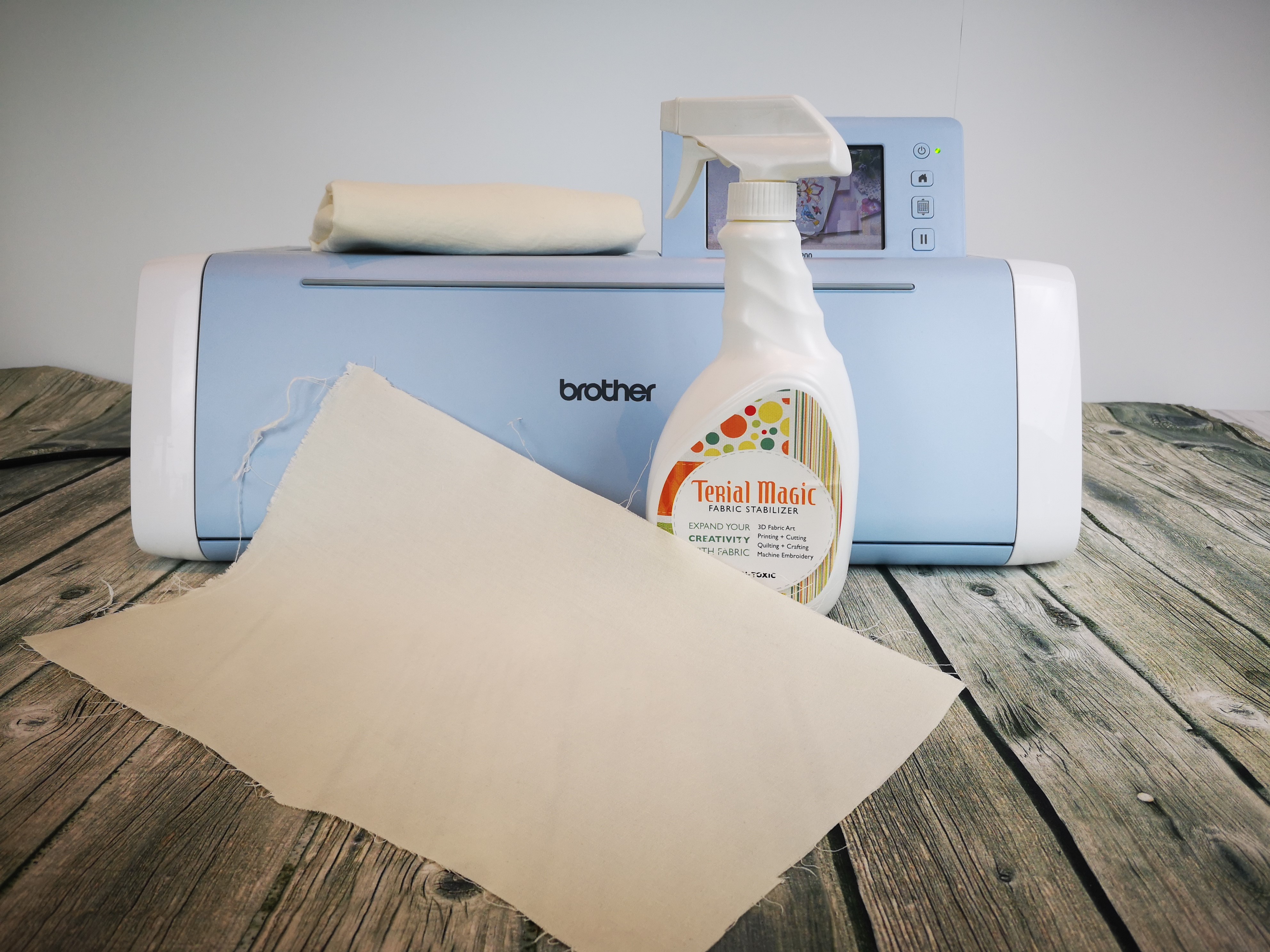Durch die Vorbehandlung mit Terial Magic erhält der Stoff – temporär – eine Papierartige Materialbeschaffenheit. Er kann danach problemlos mit dem Drucker bedruckt werden. Der Stoff wird mit Terial Magic besprüht (alternativ FIXtil von plottiX), danach lässt man ihn leicht antrocknen und bügelt diesen im Anschluss noch, bis sich die Materialbeschaffenheit verändert und der Stoff sich wie Papier anfühlt.