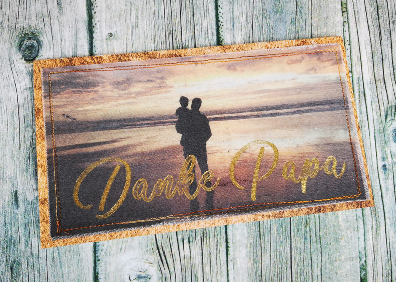 Meine Foil Quill Fotokarte zum Vatertag sollte etwas ganz Besonderes – ganz Individuelles – werden. Daher habe ich getestet, ob ich den Foil Quill Stift auch zum Beschriften von Stoff für meine Fotokarte verwenden kann. Um mir die Verarbeitung etwas zu vereinfachen habe ich meinen Stoff allerdings vorher noch mit Terial Magic (einem Textilstabilisator –Alternative FIXtil) behandelt. Damit lässt sich dieser vor dem Plotten und Veredeln mit Foil Quill auch noch bedrucken – Eine wirklich gelungene Kombination wie ich finde.