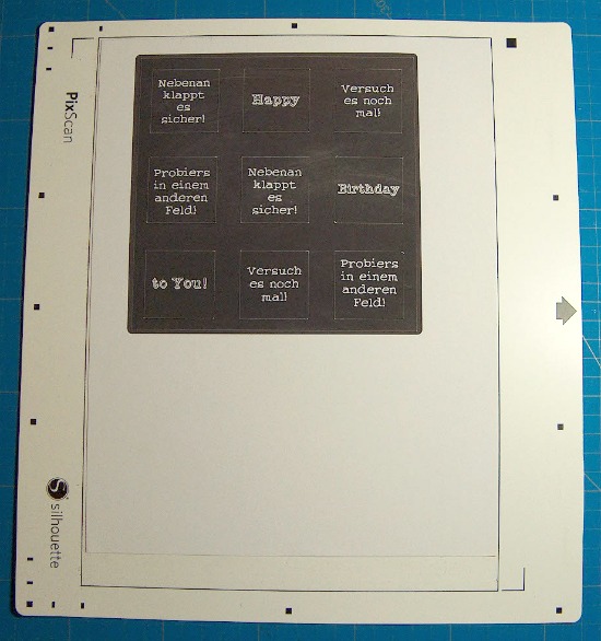 Nach dem Ausdrucken lege ich das Stickerpapier auf die PixScan Matte, mache ein Foto und lade es im SILHOUETTE Studio hoch. Die Schneidelinien müssen noch erstellt werden, und dann kann mit der SILHOUETTE CAMEO geschnitten werden.