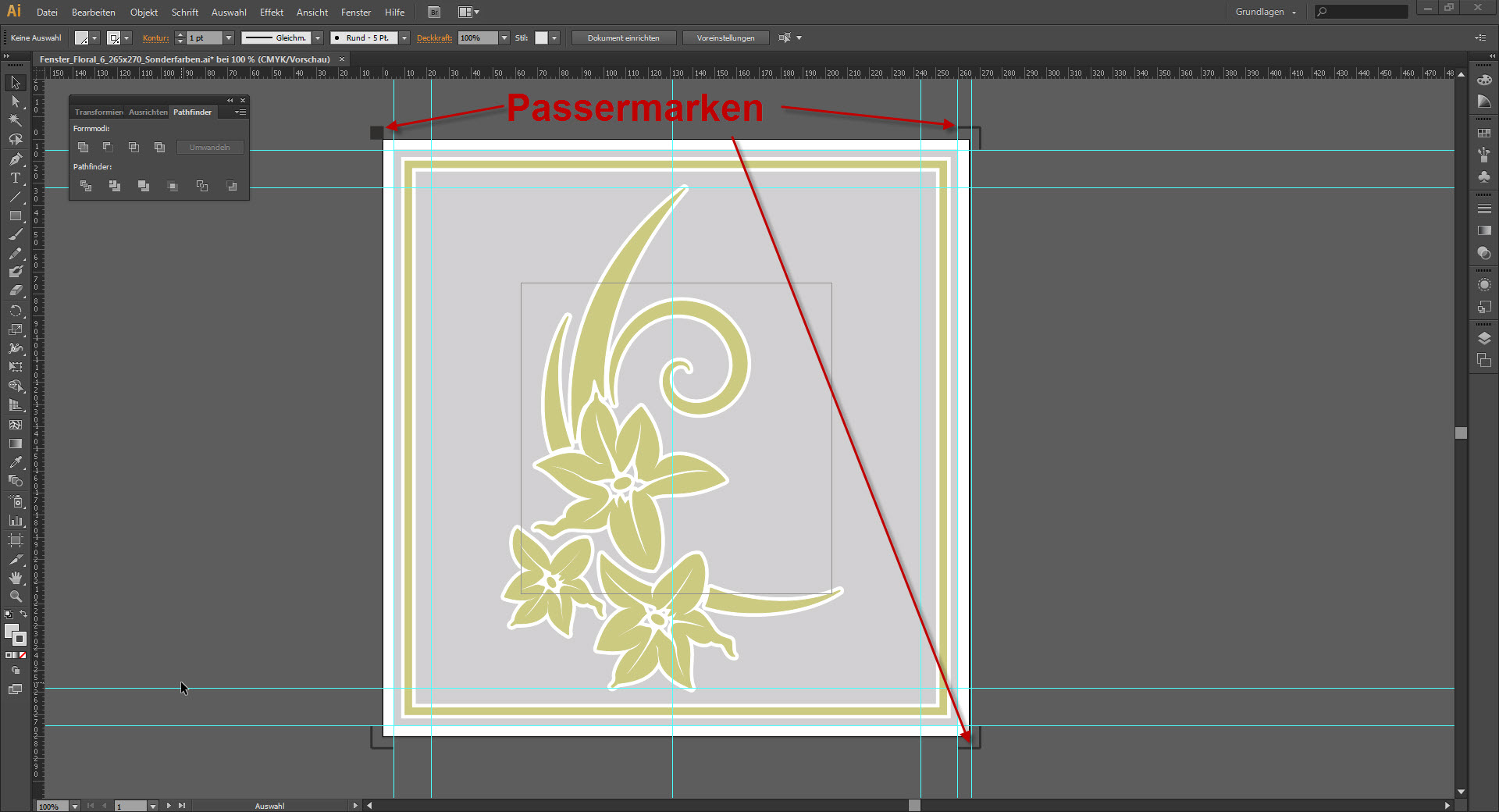 Design für die Fensterfolien mit Passermarken in Adobe Illustrator