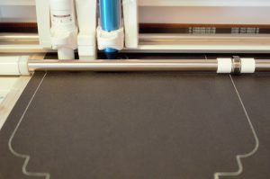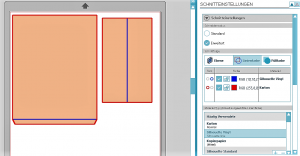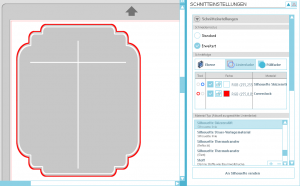Um beim Cardstock schöne Falzlinien zu bekommen lasse ich diese nur leicht anritzen. Dafür setzte ich in den rechten Halter ein altes, nicht automatisches Messer ein (Einstellung für Vinyl). Und lasse ebenfalls wieder alles in einem Zug schneiden.
