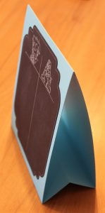 Jetzt nur noch das Grundgestell, die „Tafel“ mittig, zusammenkleben. Fertig. Natürlich könnt ihr diese Tafel auch z.B. als Menütafel oder ähnliches nutzen.
