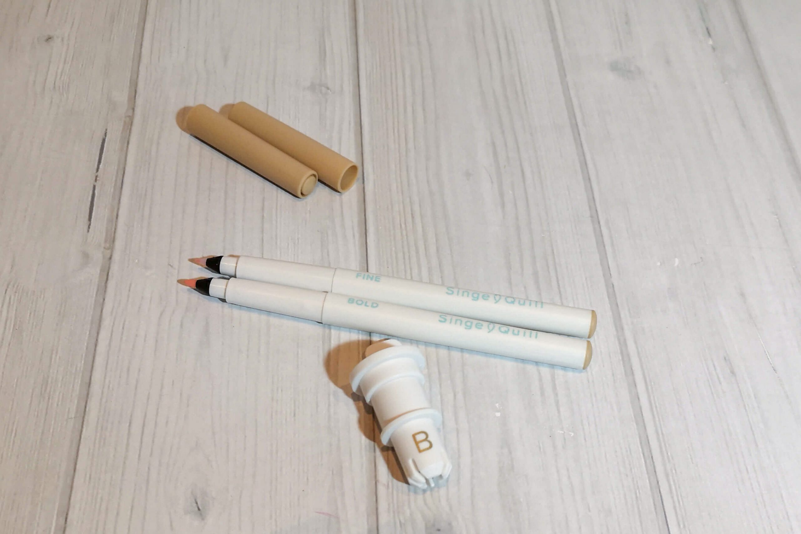 Im Singe Quill Set sind 2 Stifte enthalten Bold = breit und Fine = feine Stiftspitze. Je nachdem wie breit ich das Design zeichnet möchte, kann ich mir jetzt den passenden Stift auswählen.