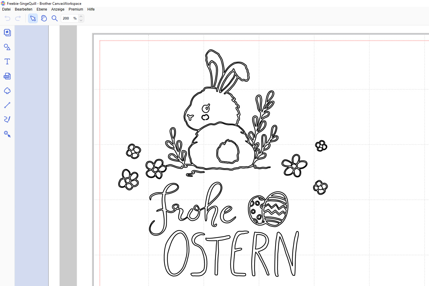 Ich habe für mein März-Freebie aus Singe Quill die Uni Variante der Datei gewählt. Da ich mein Muster mit dem Brother SDX2200D erstelle, passe ich bereits im Brother CanvasWorkspace die Größe des Musters an meine Holzkarte an.