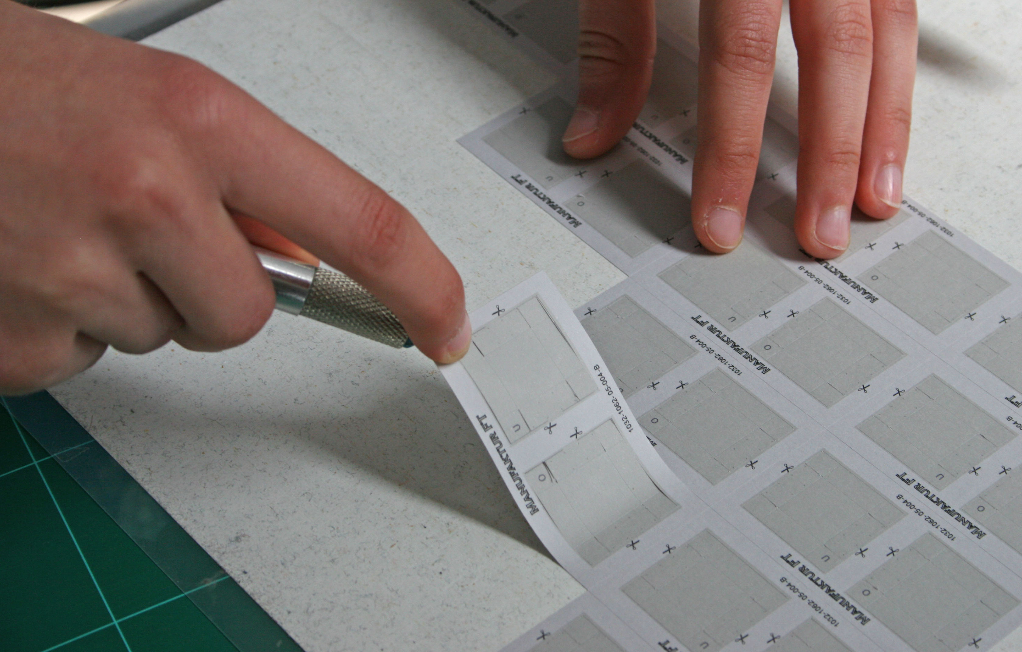 Zum Schneiden von Papier kommen Geschwindigkeiten bis zu 20 cm/sec. zum Einsatz, das Prägen der Falzkanten erfolgt mit einem speziell hergestellten Stichel, dessen gehärtete und polierte Spitze die winzige Prägerille mit geringerer Geschwindigkeit und im oberen Bereich für die Andruckkraft ins Papier prägt. Diese schmale Rille zum Falzen der Modellkartons ist für anspruchsvolle Modelle wichtig.