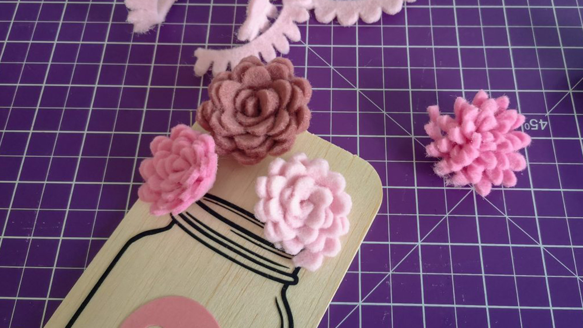 Zuletzt plotte ich die verschiedenen Filzblumen und Blätter für meine Muttertagsidee aus.