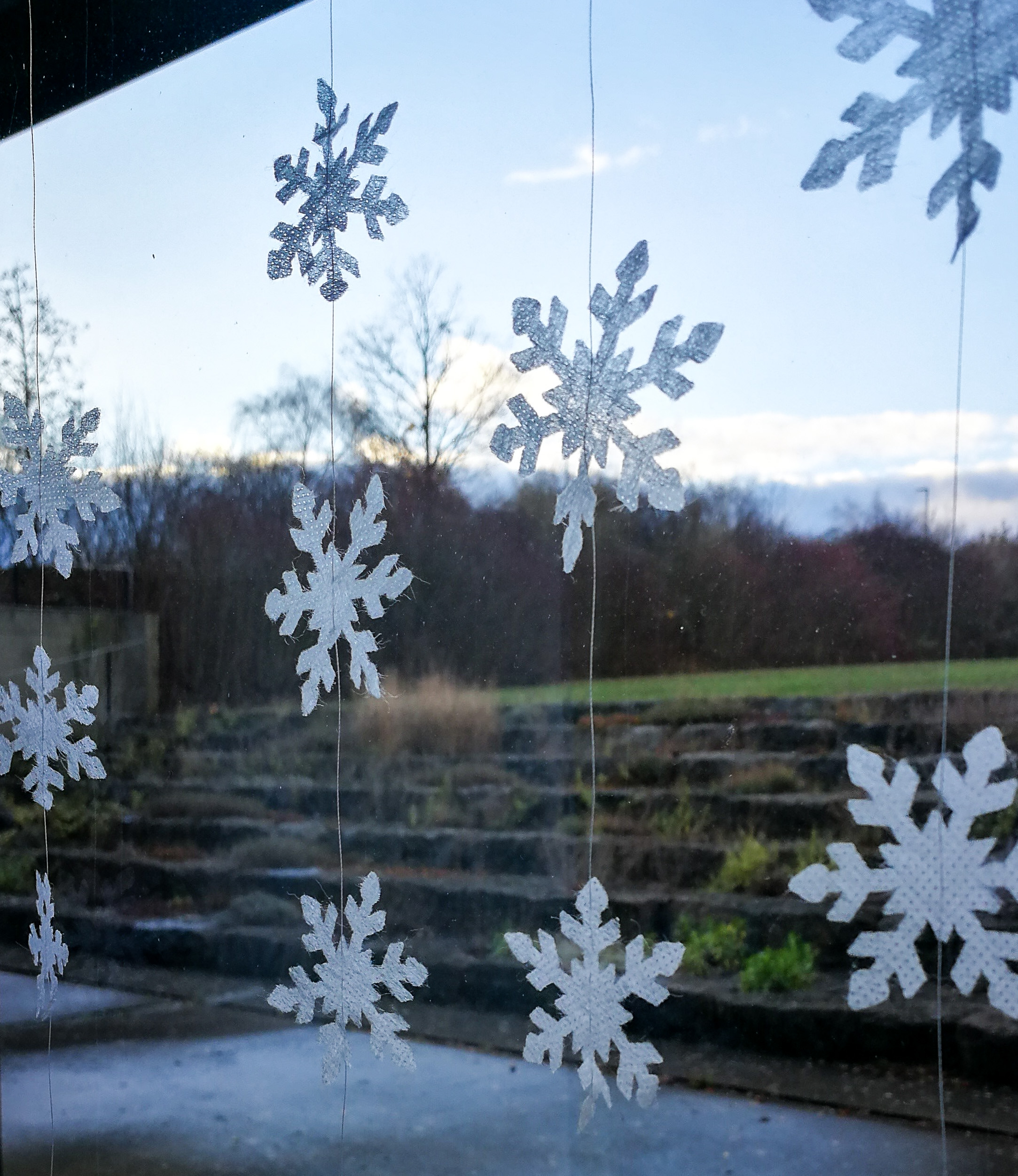 Für meine winterliche Fensterdekoration habe ich mir die Schneeflocken aus einem dünnen Vlies geplottet
