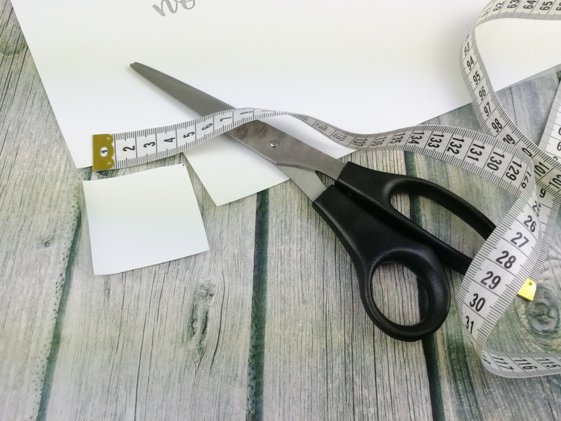 Um das geplottete Design leichter einspannen zu können schneide ich jetzt an allen 4 Ecken ein Quadrat mit einer Seitenlänge etwa 5 cm aus. Mit den ausgeschnittenen Ecken lässt sich der Stoff leichter passgenau einspannen. Eingespannt wird der Stoff mit der unbeplotteten Seite nach unten. Die Folie zeigt nach oben.