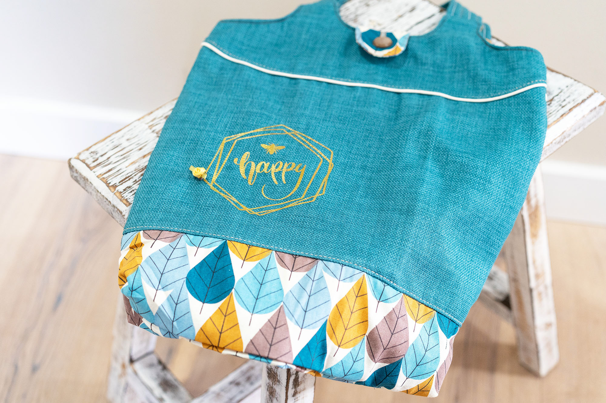 In zartem Gold setzt das happy September Freebie auch hier einen tollen Akzent – ebenfalls perfekt passend zu den Herbstblättern auf dem Stoff.