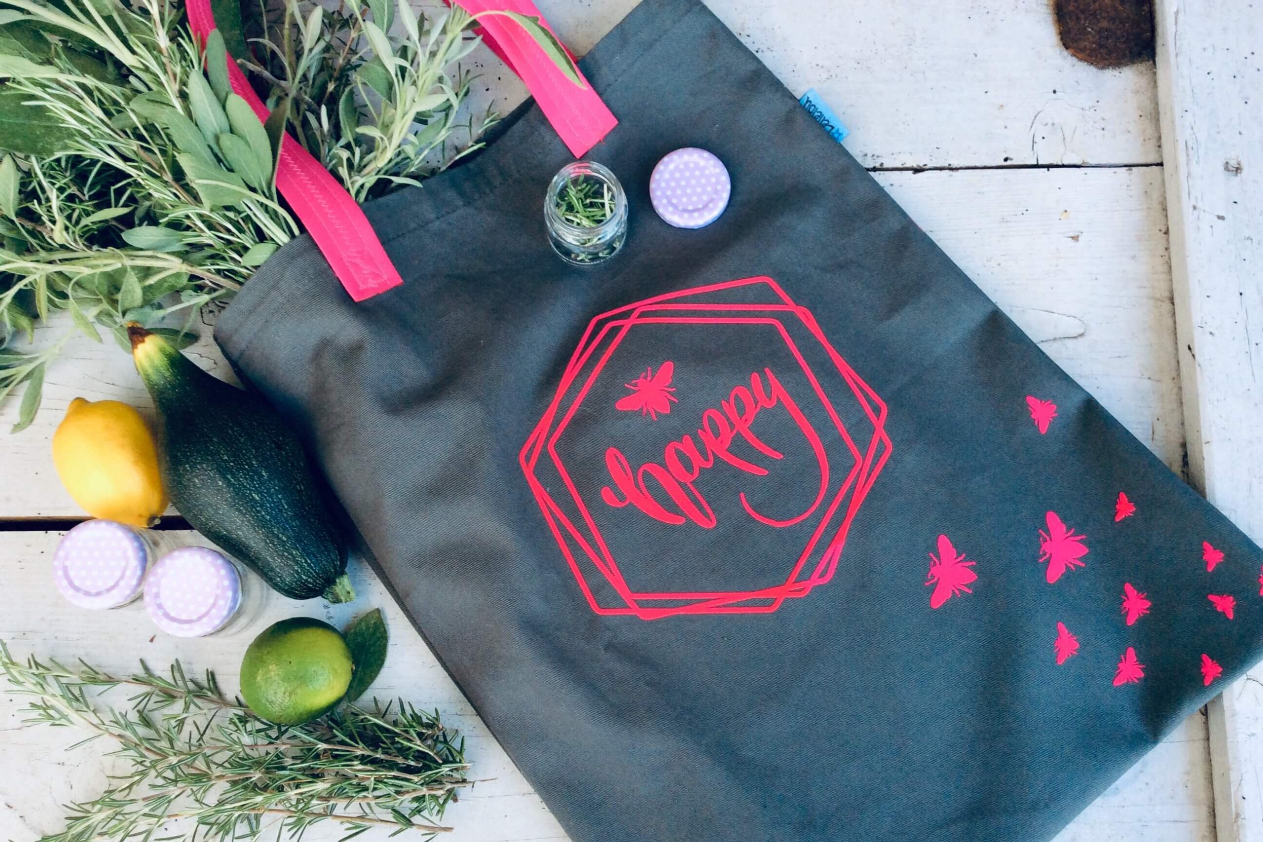 Leuchtendes Neonpink auf dunklem Grau – damit schafft man auf jeden Fall einen tollen Kontrast. Perfekt für den Herbsteinkauf. Die Biene kann zudem natürlich auch einzeln verwendet werden. Hier wurde es gleich ein ganzer Schwarm.