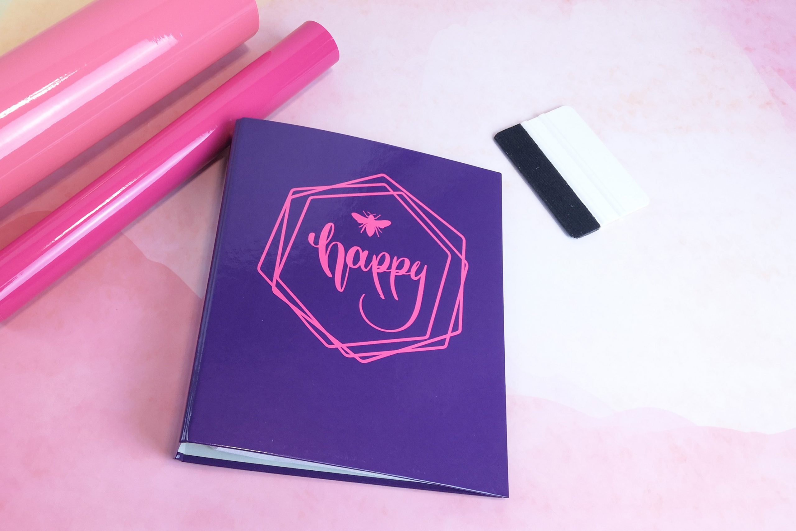 Zum verschönern unseres Ordners mit einem happy Aufkleber haben wir uns das happy September Freebie aus Permanent Vinylfolie von plottiX geplottet. Hier gilt, wie bei allen filigraneren Dateien, lieber etwas langsamer schneiden und entgittern.