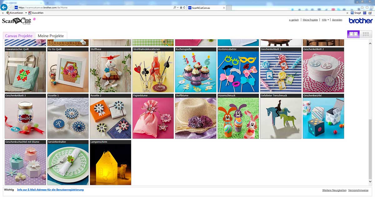 Im Frühjahr dieses Jahre hat sich Brother entschlossen diesen Service für die Anwender der Hobbyplotter ScanNCut weiter auszubauen. Zu dieser Zeit wurde ein neuer Reiter in die Software eingefügt unter dem kostenlose Bastelprojekte für die Anwender angeboten werden.