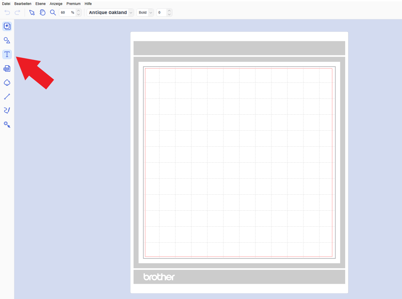 Startet zunächst euer Brother CanvasWorkspace und wählt die Textfunktion aus.