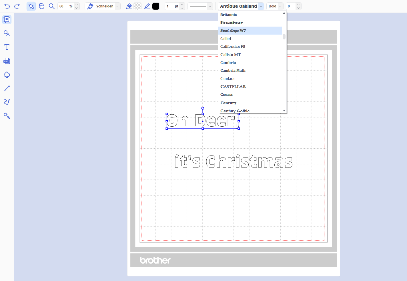 Nun suchen wir die richtige Schrift aus. Schön weihnachtlich ist beispielsweise „Brush Script M7“.