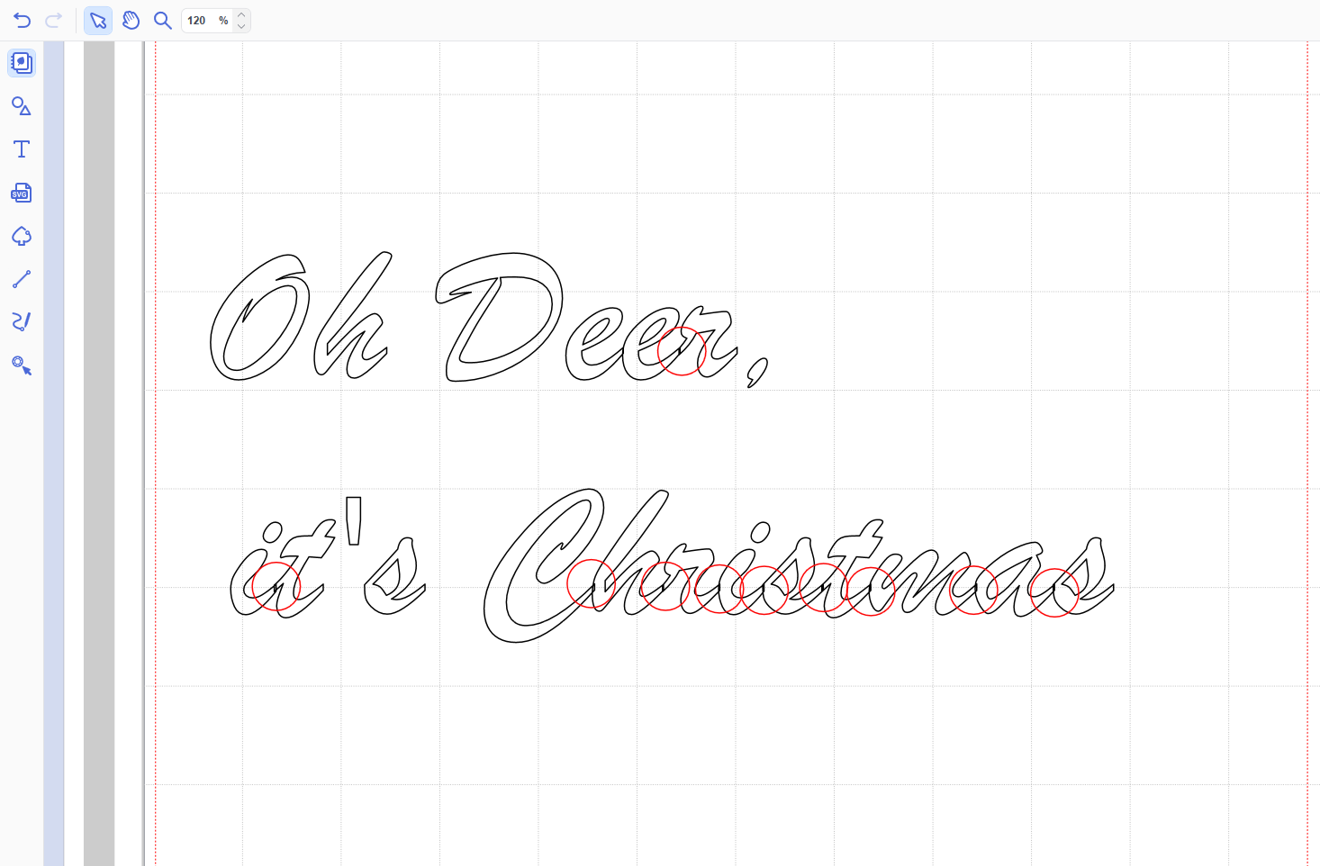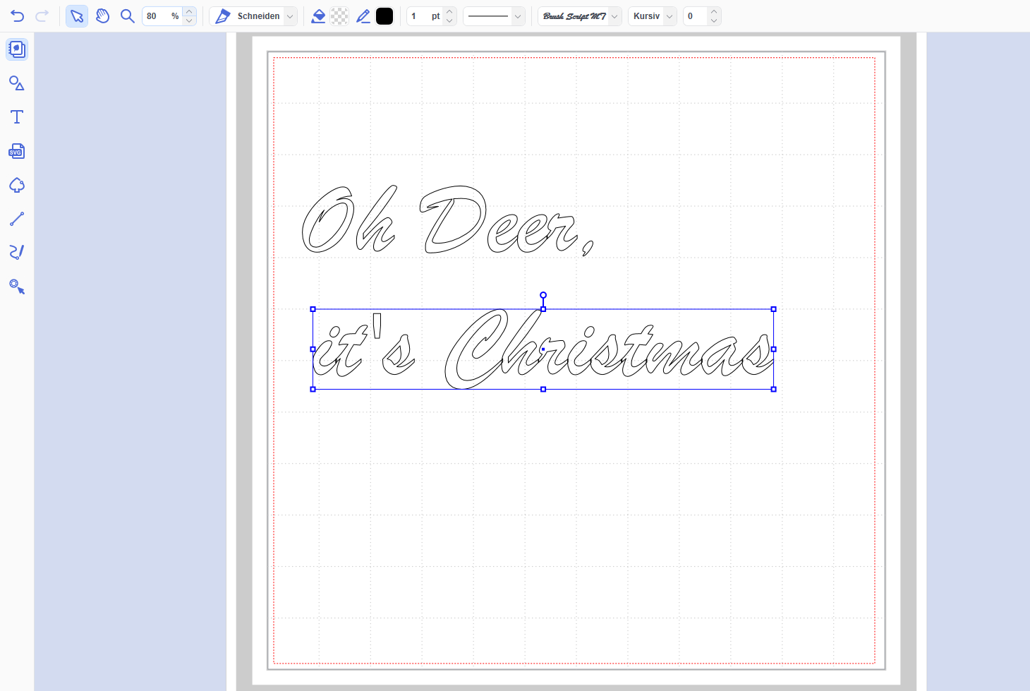 Wie ihr bei dieser Schriftart jetzt aber sehen könnt, überlappen die einzelnen Buchstaben. Das führt beim Plotten zu Problemen – deshalb müssen wir diese Überlappungen verschmelzen!