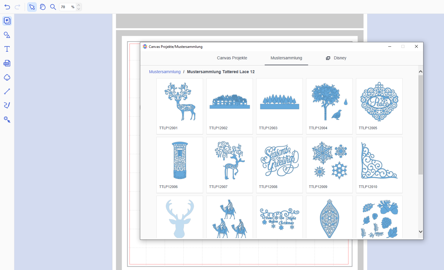 Das Schriften verschmelzen hat geklappt? Um das ganze Projekt noch aufzupeppen öffnet die CanvasWorkspace Mustersammlung.