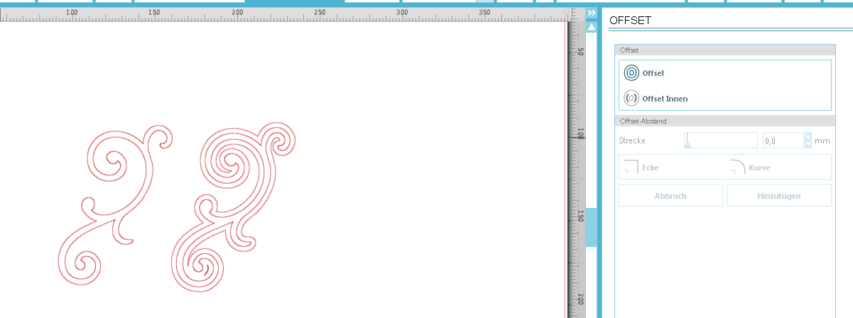 Bei den Schnörkeln fügte ich ein „Offset“ mit 3mm hinzu, um einen Rahmen zu erhalten.