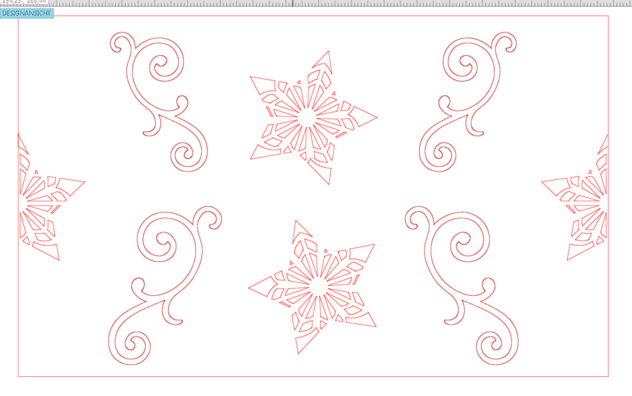 Nun konnte ich mit dem Gestalten beginnen. Als erstes Zeichnete ich mir ein Rechteck mit meinen Maßen und fügte die Dateien ein. Da bei den Sternen auf dem Stoff nur der Innenbereich geschnitten werden sollte, entfernte ich den äußeren Rand. Dafür die Datei markieren, verknüpften Pfad aufheben und löschen was nicht benötigt wird.