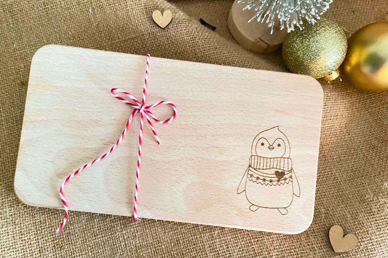 Der Dezember ist der Monat der Wichtelgeschenke und Adventskalenderideen. Dir fehlt dazu noch eine süße Kleinigkeit? Dann erstelle doch kleine Pinguin-Anhänger oder ein Frühstücksbrettchen mit deinem Laser!