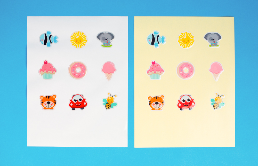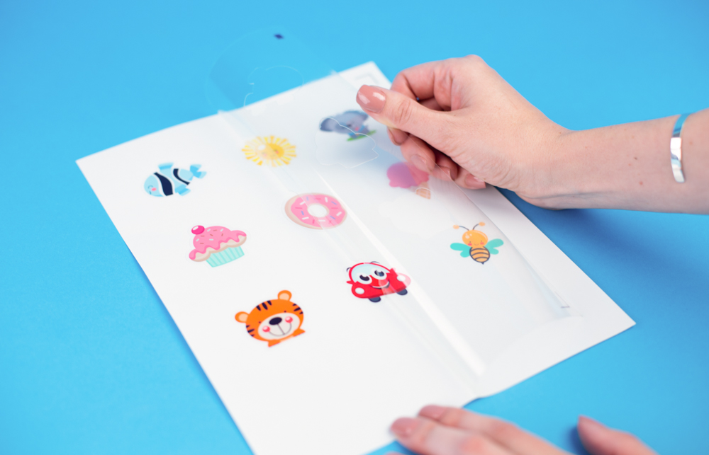 4. Im nächsten Schritt können Sie das überschüssige Material entfernen und von Ihrem Design entfernen. Nun sind nur noch ihre Aufkleber auf dem Blatt vorhanden.