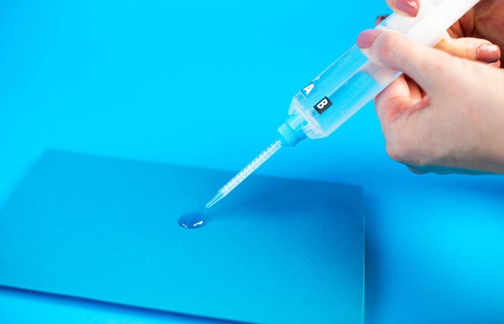 7. Befestigen Sie die Spitze und bereiten Sie diese vor, indem Sie einen kleinen Klecks (ca. 1 cm Durchmesser) des Epoxidharz auf ein Schmierblatt aufbringen. Damit gehen Sie sicher, dass Ihr Epoxidharz gleichmäßig vermischt ist.