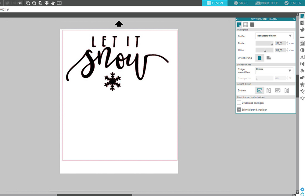 1. Öffnen Sie Ihr Design im Silhouette Studio. Unter der Option „Schneidematte“ können Sie anschließend Ihren Träger wählen. Da Sie ohne Schneidematte arbeiten möchten: „Keiner“.