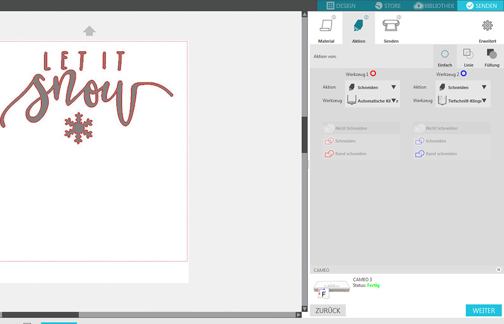 In der Software wählen Sie wie gewohnt Ihr Material und Werkeug aus.