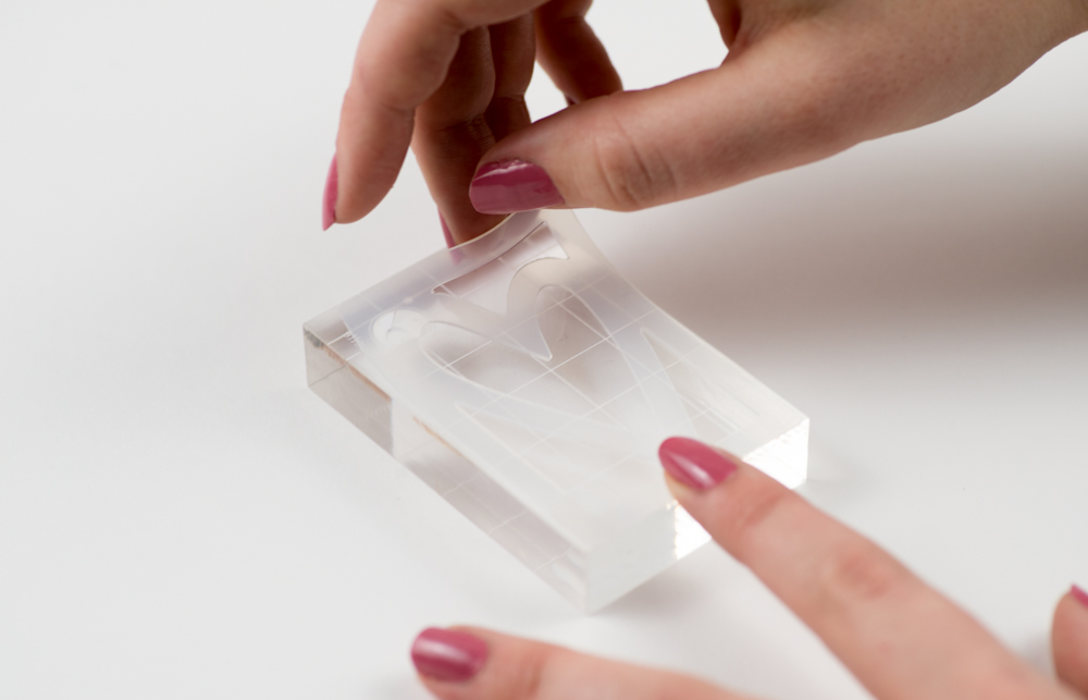 7. Anschließend können Sie Ihren Stempel auf einen passenden Acryl Stempelblock legen. An den Linien können Sie Ihr Design ausrichten.
