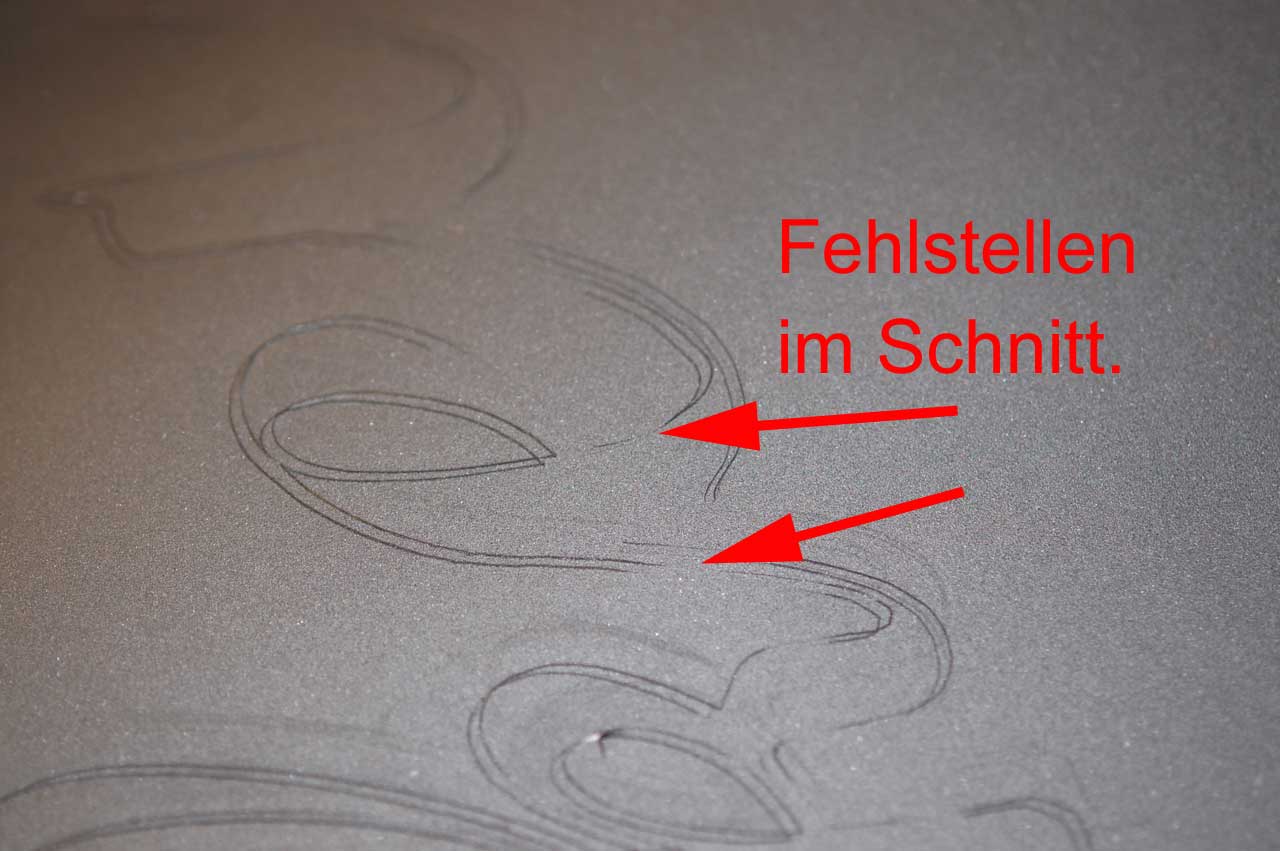 Fehlstellen beim Schnitt im Vinyl. Durch Schneideleiste SILHOUETTE CAMEO