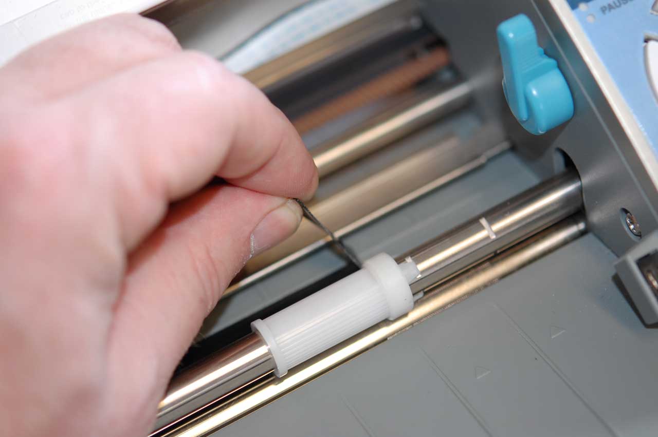 Wenn der Schneideplotter (hier am Beispiel eines Hobbyplotter SILHOUETTE CAMEO) nicht mehr sauber schneidet, kann eine verbrauchte Schneideleiste der Grund dafür sein.